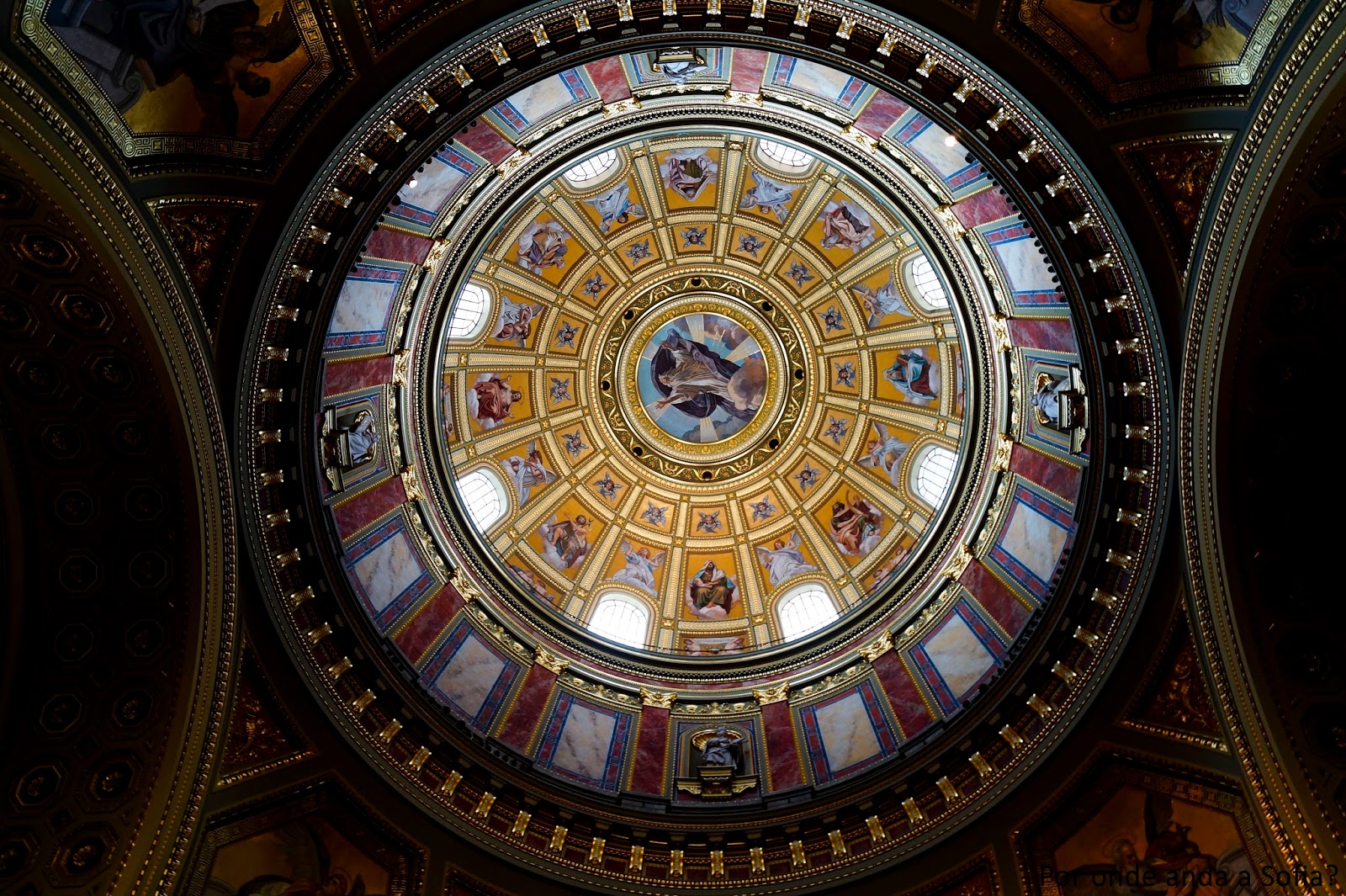 Este imponente edifício, com 96 metros, em estilo neo-clássico, em forma de cruz grega, com várias influências de outros estilos, relacionados com a influência dos povos que habitaram a Hungria.